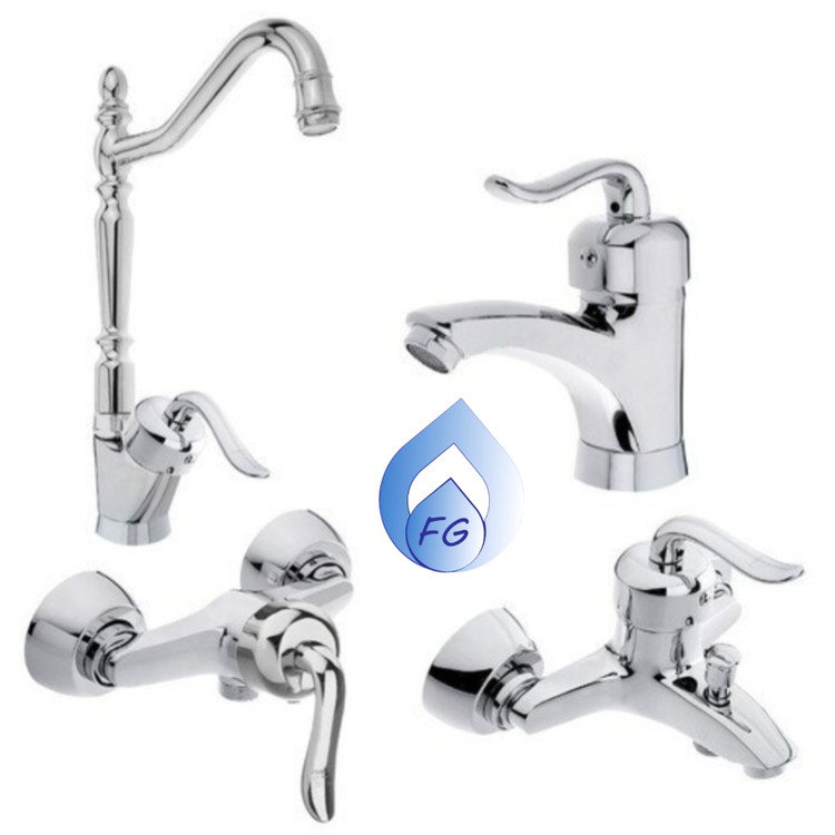 شامل ۴ عدد شیر: علمک بلند ظرفشویی، روشویی، حمام و دوش