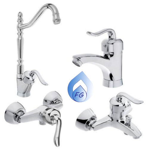 ناموجودست 6 عدد شیرآلات کروم همراه با دوش تک منظوره و شلنگ توالت کروم